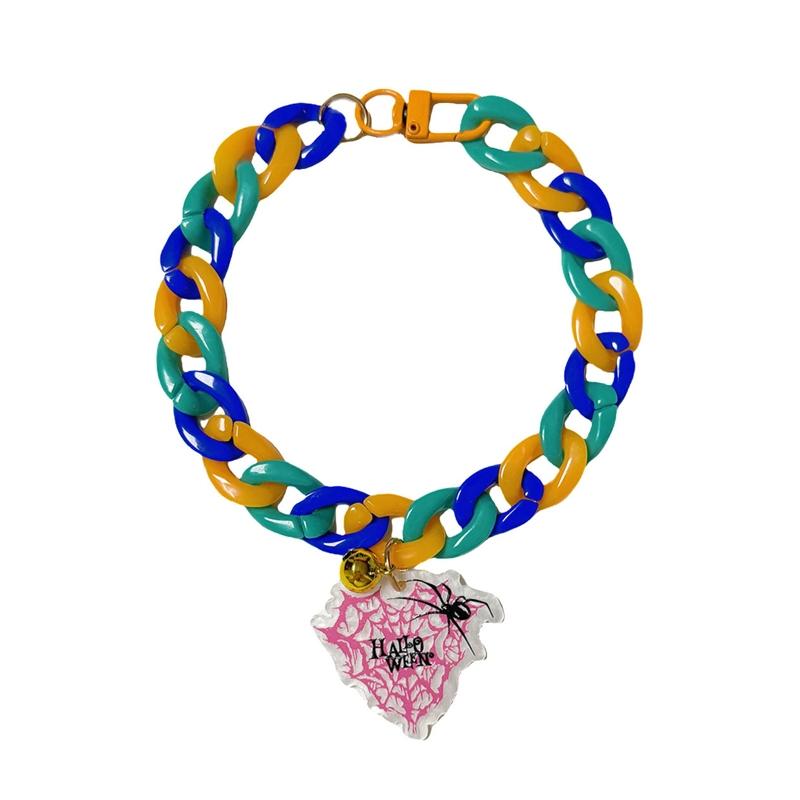 Κολάρο Halloween για κατοικίδια, ετικέτα καρτούν, κολάρο για γάτες και σκύλους, διακοσμητική αλυσίδα ρυθμιζόμενη για τις γιορτές, Στυλ: Αράχνη (Μ-40cm)