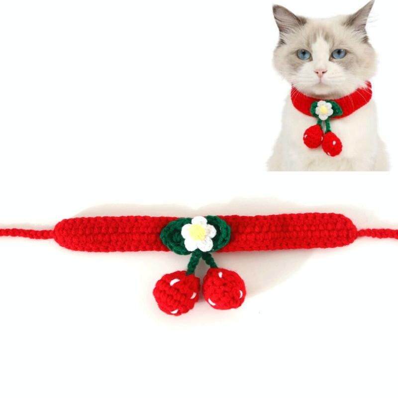 Pet Χειροποίητο πλεκτό πλεκτό μαλλί Cherry Cat Dog Collar Bib Ρυθμιζόμενο κολιέ, Προδιαγραφές: S 20-25cm (Κόκκινο)