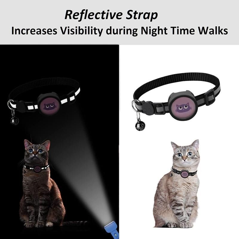 Κολάρο κατοικίδιων με αντανακλαστικές ιδιότητες και κουδουνάκι για AirTag (Μαύρο)