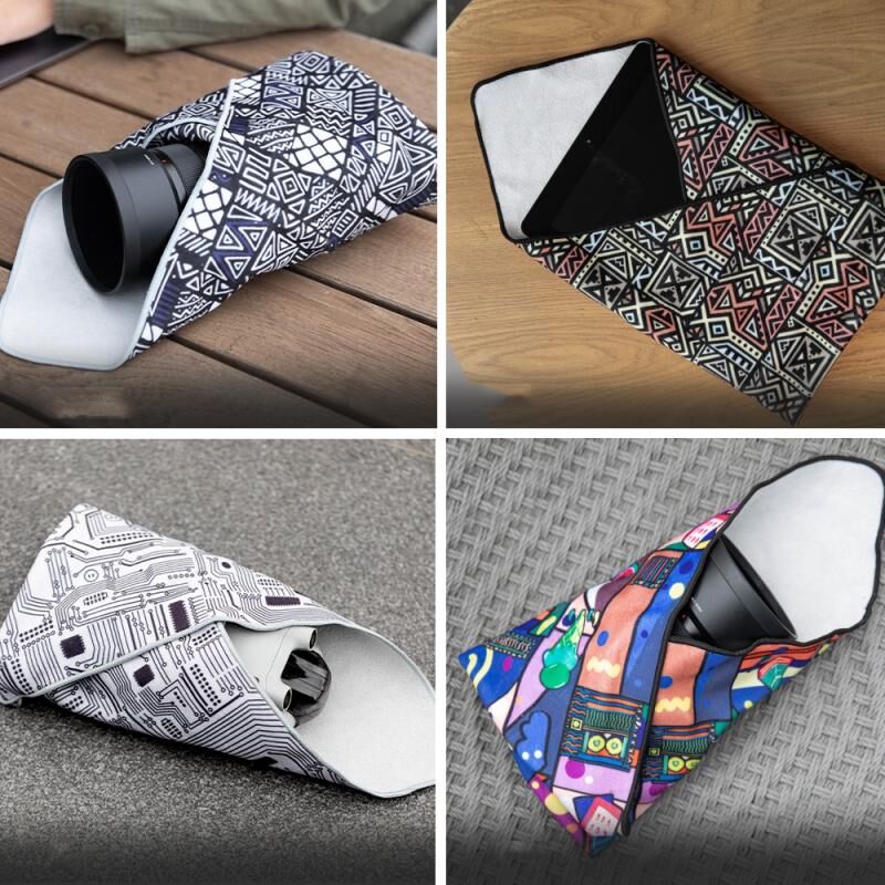2. It fits securely around cameras, lenses, small tripods, filters, tablets or other things.