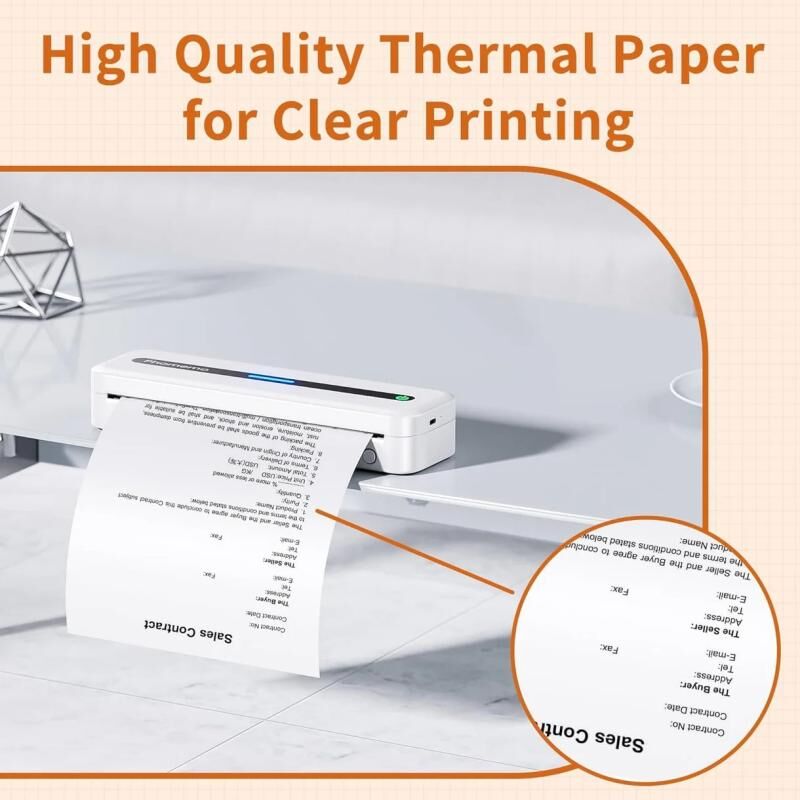 5. Ευρύ φάσμα εφαρμογών - Το θερμικό χαρτί χρησιμοποιείται ευρέως σε οικιακά γραφεία, επιχειρηματικές σχολές και μπορεί εύκολα να τοποθετηθεί στον φορητό εκτυπωτή M832 για επαγγελματικά ταξίδια, εξωτερικούς χώρους, γραφείο κ.λπ., εκτύπωση οποιαδήποτε στιγμή και οπουδήποτε, ιδανικό για επαγγελματική και ταξιδιωτική εκτύπωση.
