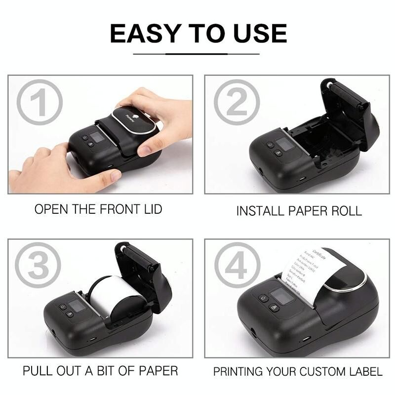 1. Μίνι ασύρματος φορητός θερμικός εκτυπωτής ετικετών Bluetooth για κινητά, συνδέστε εύκολα το κινητό σας τηλέφωνο. Υπάρχουν πολλά πρότυπα στο APP, μπορείτε εύκολα να εκτυπώσετε οποιαδήποτε ετικέτα χρειάζεστε, ετικέτες ρούχων, ετικέτες τιμών, ετικέτες καλωδίων, ετικέτες κοσμημάτων, ετικέτες διευθύνσεων, ετικέτες φακέλων και ούτω καθεξής.
