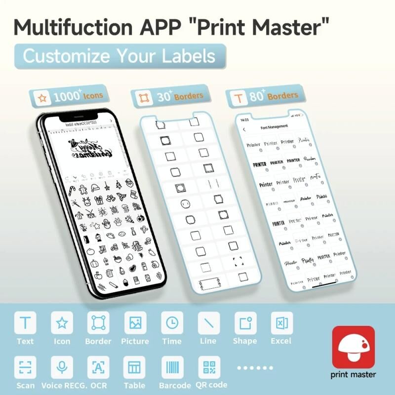 2. APP Software: Mobile APP: Print Master; PC APP: Label Life
