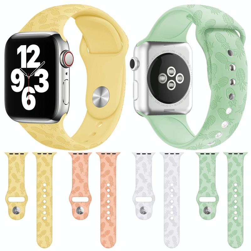 Λουράκι Σιλικόνης για Apple Watch με ανάγλυφο σχέδιο ανανά για Series 9&8&7 41mm / SE 3&SE 2&6&SE&5&4 40mm / 3&2&1 38mm (Λευκό)