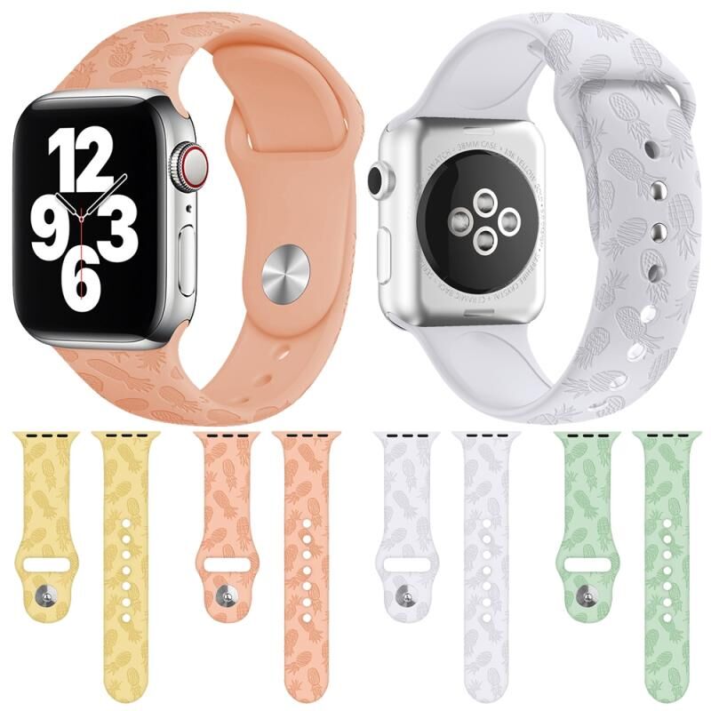 Λουράκι Σιλικόνης για Apple Watch Ultra 49mm & Watch Ultra 2 49mm / Series 9 & 8 & 7 45mm / SE 3 & SE 2 & 6 & SE & 5 & 4 44mm / 3 & 2 & 1 42mm με ανάγλυφο σχέδιο ανανά (Λευκό)