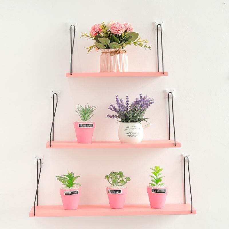 Ροζ μαλακή αδελφή κορίτσι καρδιά καρδιά τοίχου κρεμασμένο ράφι κρεβατοκάμαρα διακόσμηση κάτοχος χωρίς καρφί, μέγεθος:Medium