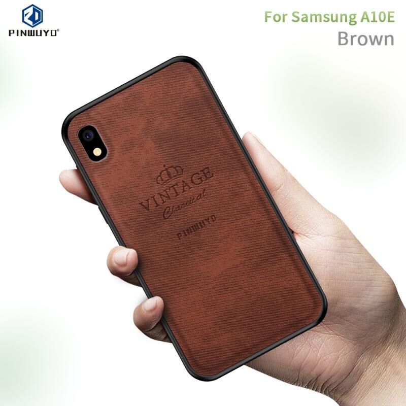 Θήκη προστασίας PINWUYO αντικραδασμική, αδιάβροχη, πλήρους κάλυψης από PC + TPU + δέρμα για Galaxy A10e (Καφέ) (PINWUYO)