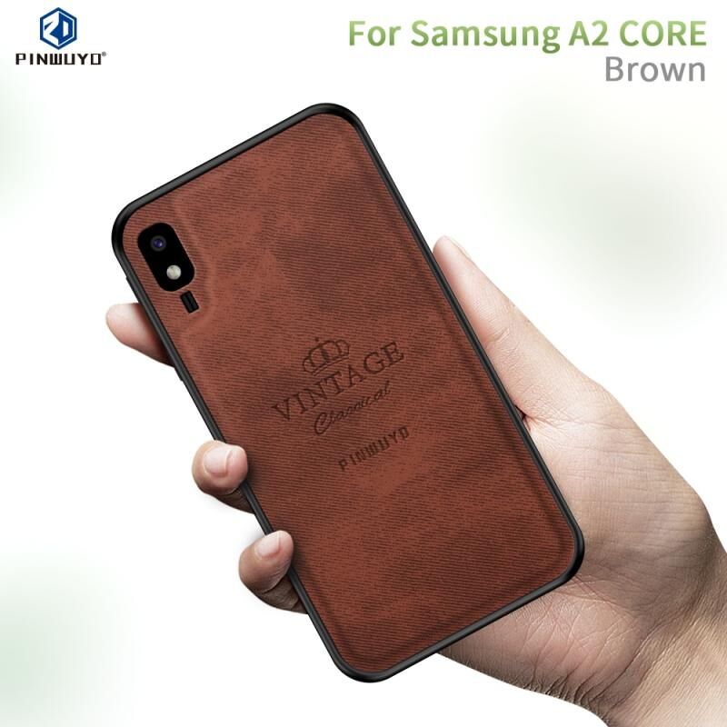 Θήκη προστασίας PINWUYO ανθεκτική σε κρούσεις, αδιάβροχη, πλήρους κάλυψης από PC + TPU + δέρμα για Galaxy A2 Core (Μαύρο) (PINWUYO)