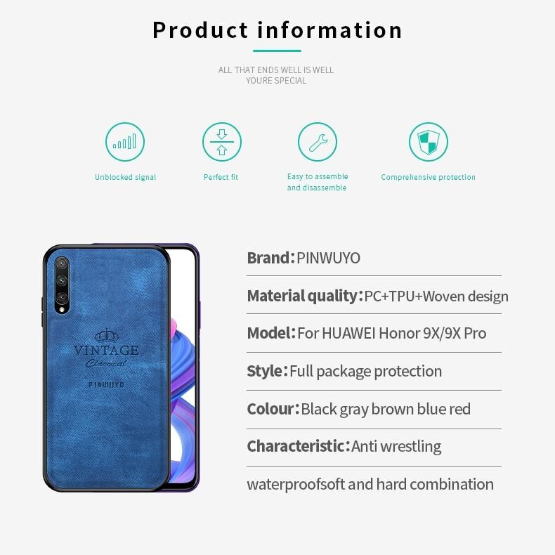 Θήκη προστασίας PINWUYO ανθεκτική σε κραδασμούς και αδιάβροχη, πλήρης κάλυψης από PC + TPU + δέρμα για Huawei Honor 9X / Honor 9X Pro (Μπλε) (PINWUYO)