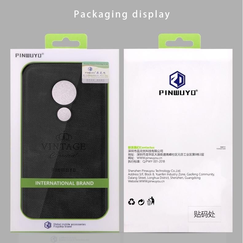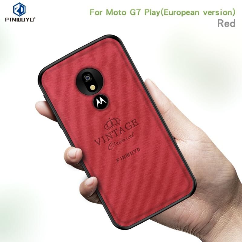 Θήκη προστασίας PINWUYO ανθεκτική σε κραδασμούς και αδιάβροχη, πλήρης κάλυψης από PC + TPU + δέρμα για Motorola Moto G7 Play (Ευρασιατική έκδοση)(Μαύρο) (Κόκκινο)