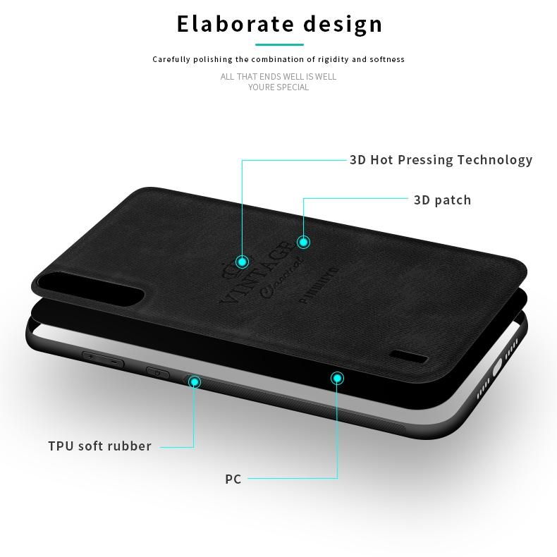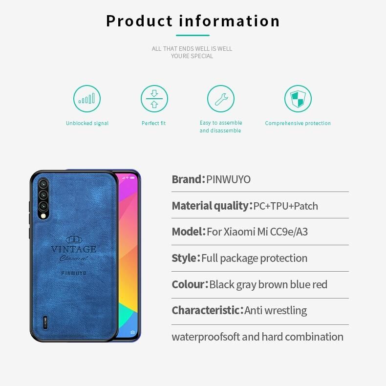 Θήκη προστασίας PINWUYO αντικραδασμική, αδιάβροχη, πλήρους κάλυψης από PC + TPU + δέρμα για Xiaomi Mi CC9e / A3 (Μαύρο) (Μπλε)