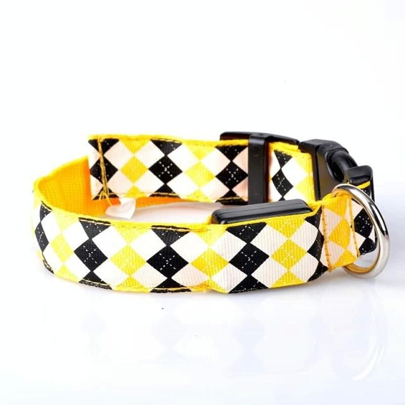 Καρό μοτίβο επαναφορτιζόμενο LED Glow Light Leads Pet Dog Collar για μικρά μεσαία σκυλιά, μέγεθος: L (κίτρινο)