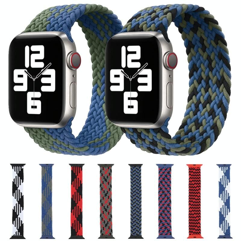 Πλαστική Αγκράφα, Μικτή Χρωματική Νάιλον Πλεκτή Ζώνη Ρολογιού Μονής Θηλιάς για Apple Watch Series 9&8&7 41mm / SE 3&SE 2&6&SE&5&4 40mm / 3&2&1 38mm, Μέγεθος: S (Καμουφλάζ Κόκκινο)