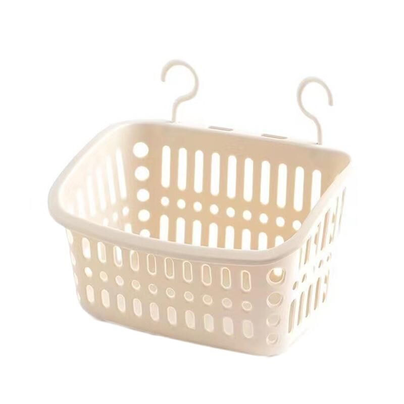 Πλαστικό κρεμαστό καλάθι με γάντζο αποθήκευσης κουζίνας Απορροφητικό καλάθι ράφι Οργανωτής μπάνιου, Χρώμα: Μεγάλο μπεζ