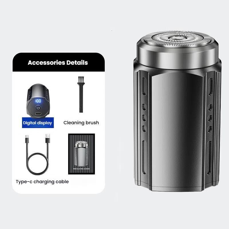 Portable Electric Shaver for Men with LCD Display – Travel-Friendly Mini Shaver, USB Type-C Fast Charging, Waterproof & Washable Design, Style: Floating Blade Dark Metallic Gray