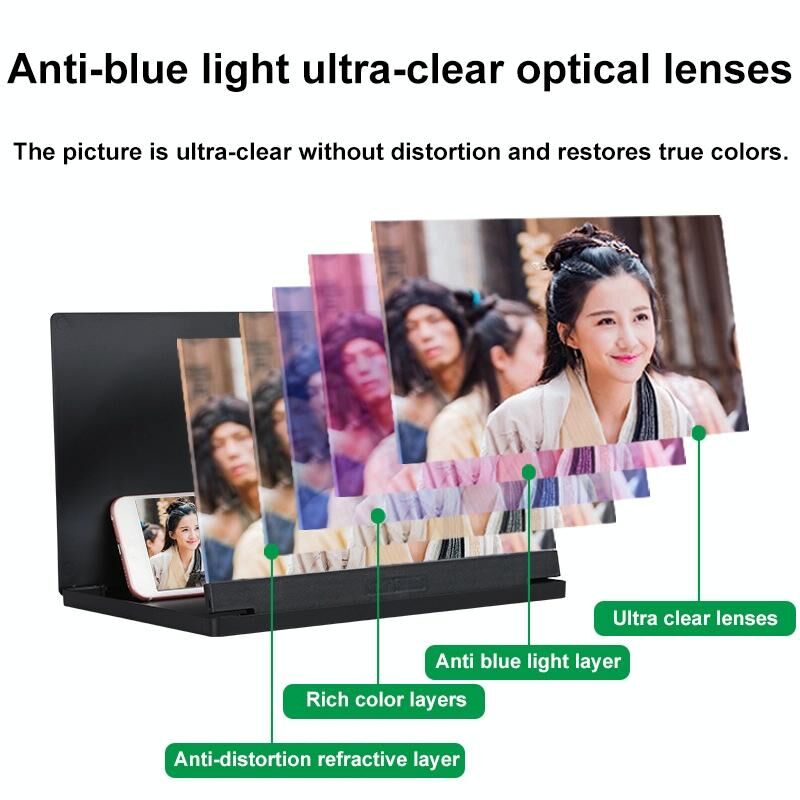 2. Functions: mobile phone screen magnification, ultra-clear mirror, foldable storage, high-definition full-screen magnification, no distortion, anti-blue light eye protection