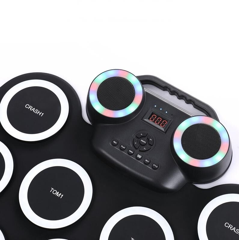 Portable Hand Roll Electronic Drum Flashing Light Bluetooth Drum(Icon Version + Black Green)