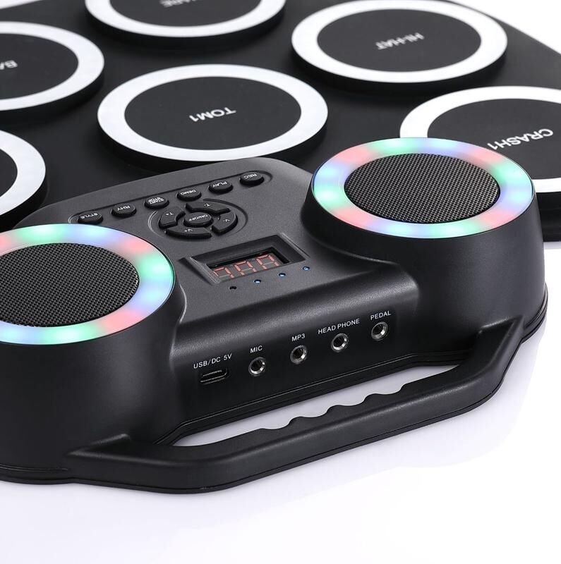 Portable Hand Roll Electronic Drum Flashing Light Bluetooth Drum(Icon Version + Black White)