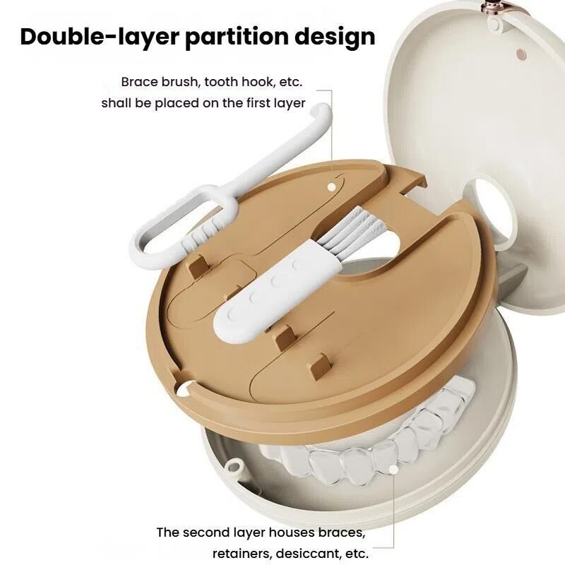 Portable Invisible Braces Box Denture Orthodontic Storage Case with Tooth Hook Set(White)