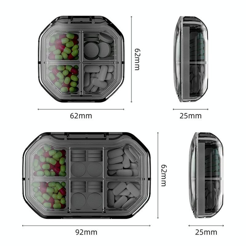 6. Transparent visual box body, medication is clearly identifiable, easy to determine whether to take medication, two capacity options, scientific use of medication, can be selected according to the actual travel situation