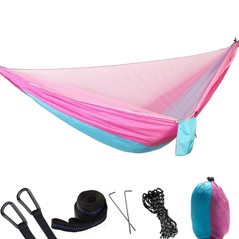 Φορητή υπαίθρια αιώρα αλεξίπτωτο με κουνουπιέρες (ροζ μπλε)