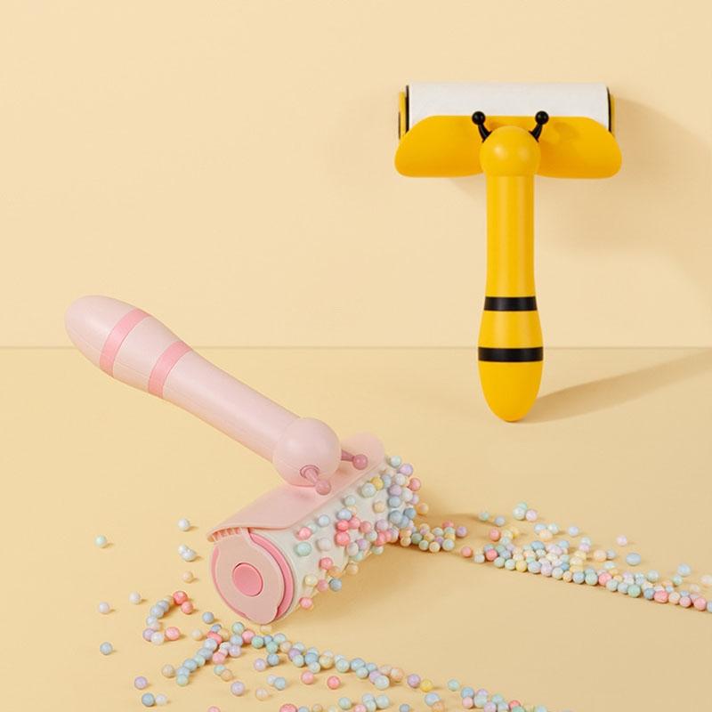 Portable Roller Sticker Bee Shaped Pet Hair Cleaner And Remover(Pink)