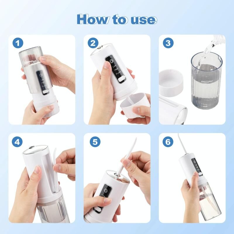 4. The nozzle can be rotated 360 degrees to meet your needs from standard cleaning to gum massage, suitable for home, office, business or travel use