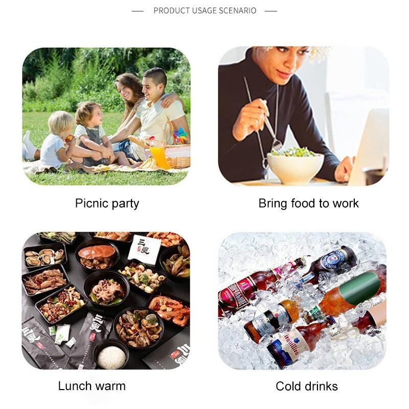 6. Εισαγωγή: Τσάντα μεγάλου χωρητικότητας, μπορεί να χωρέσει δύο κουτιά διατήρησης φρεσκάδας, 6 κονσέρβες κόλα, το πρωινό και το μεσημεριανό μπορούν να γίνουν εύκολα, τριπλή μόνωση, απομονώνει αποτελεσματικά την εξωτερική θερμοκρασία, διατηρεί κρύο, διατηρεί φρέσκο.