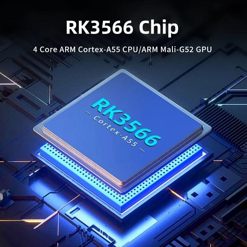 3. CPU: Rock-chips RK3566, quad-core ARM Cortex-A55, CPU clock speed: 1.8GHZ
