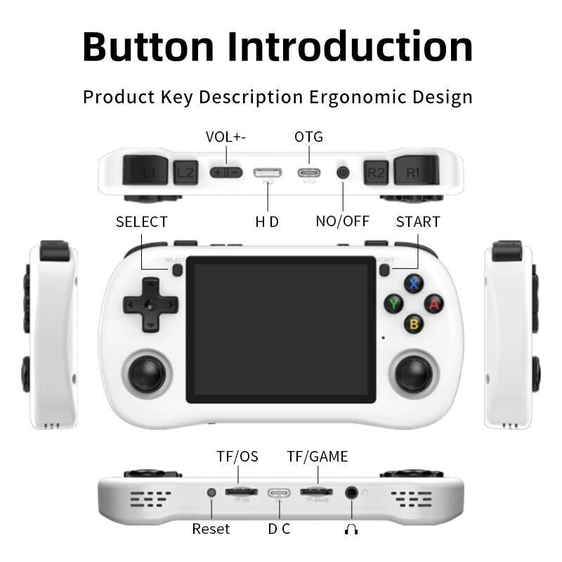 11. Other functions: support 3.5mm stereo headphones, screen brightness setting, volume setting, sleep setting, game button setting, low battery reminder, HDMI video output