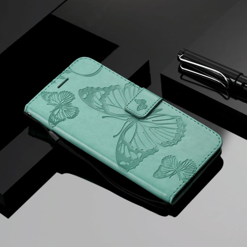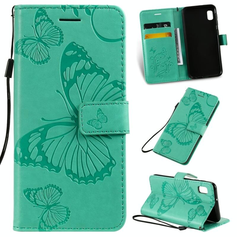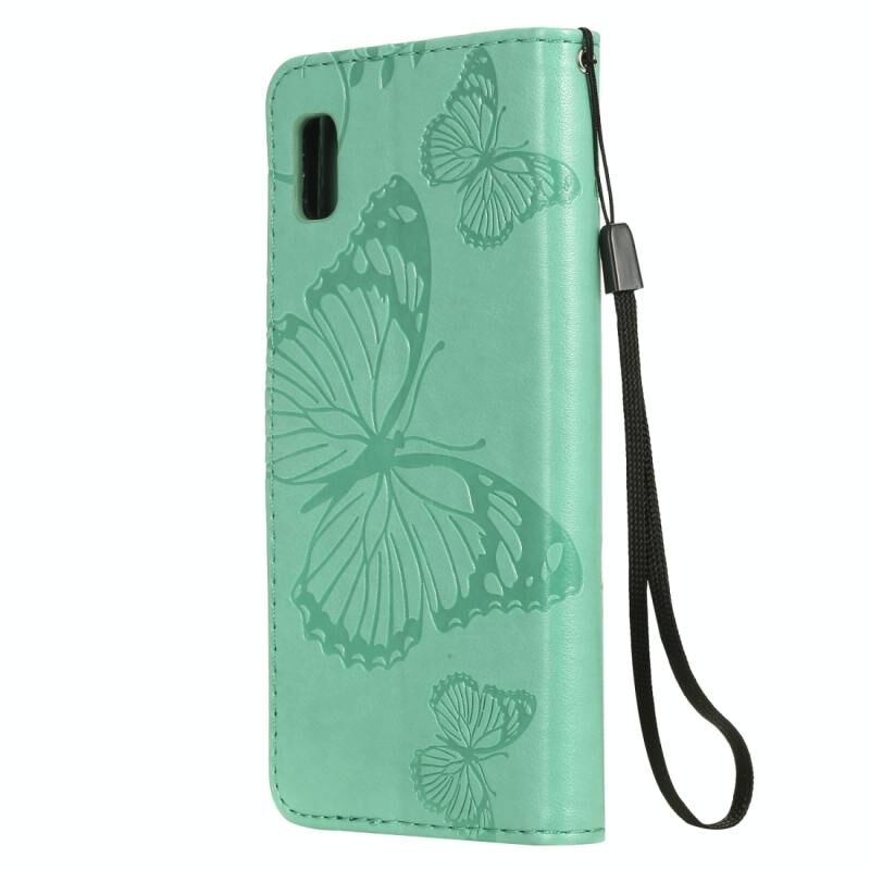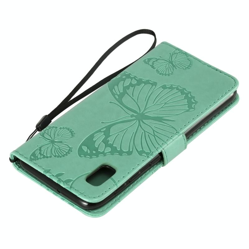 Pressed Printing Butterfly Pattern Horizontal Flip PU Leather Case with Holder & Card Slots & Wallet & Lanyard For Galaxy A10e(Green)
