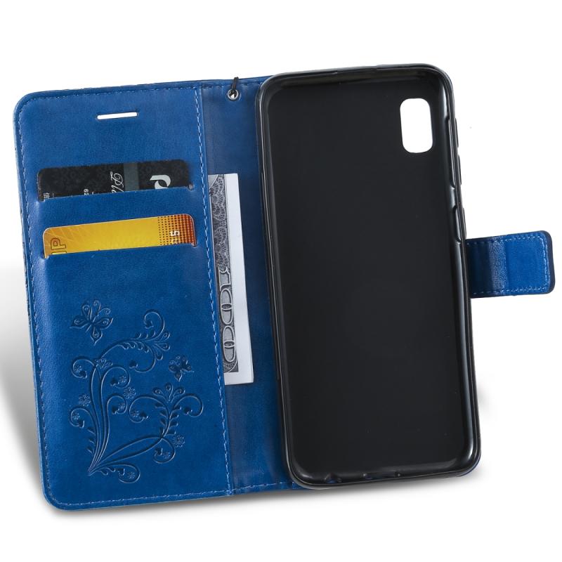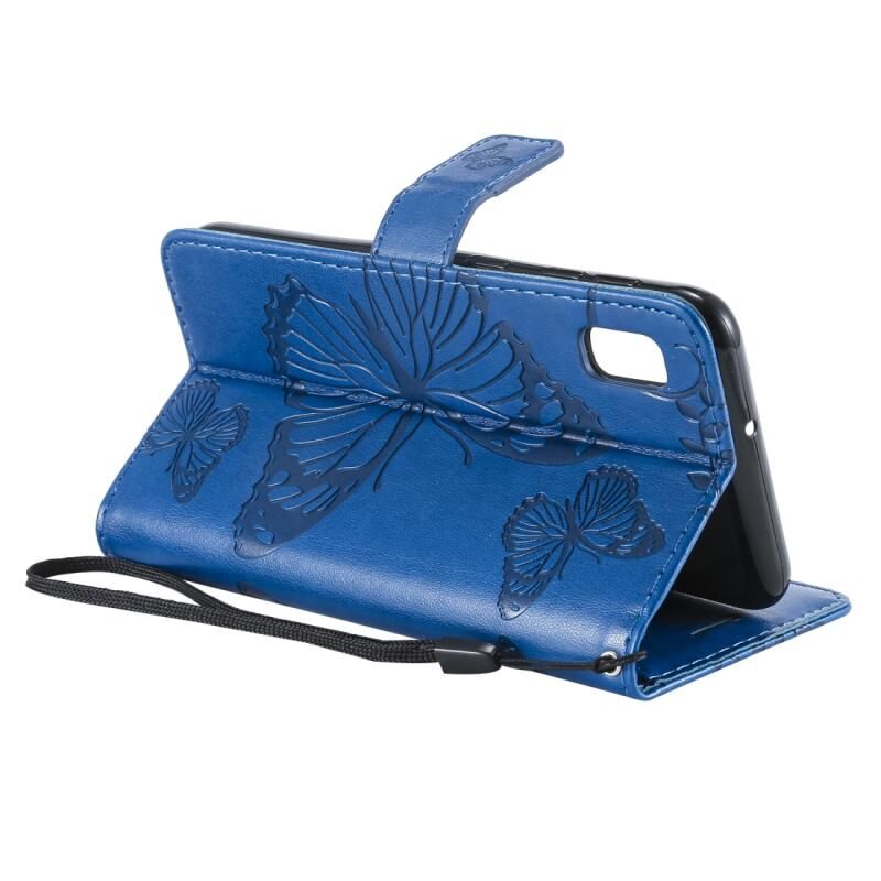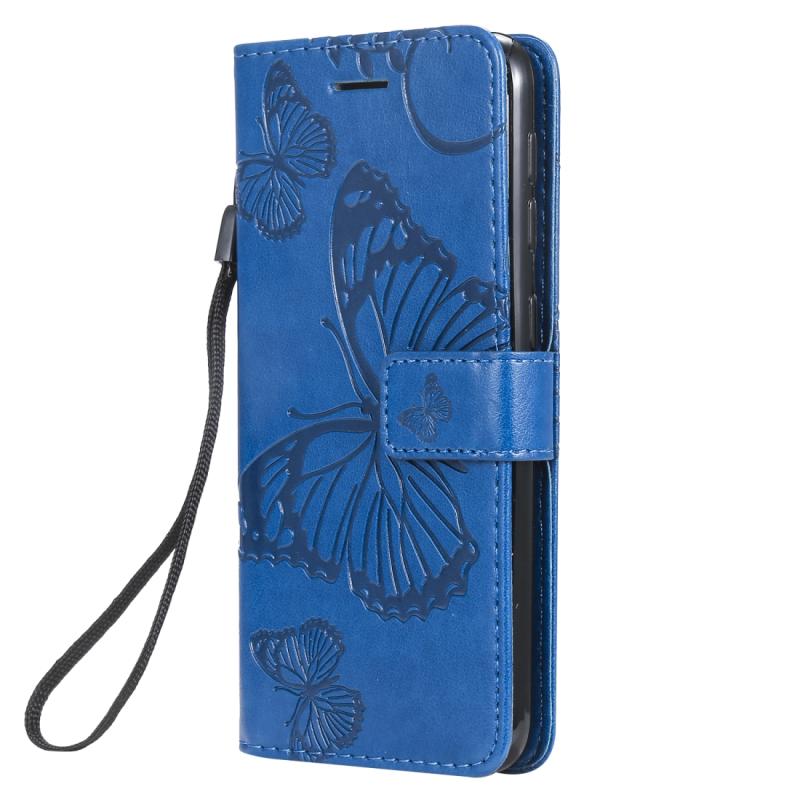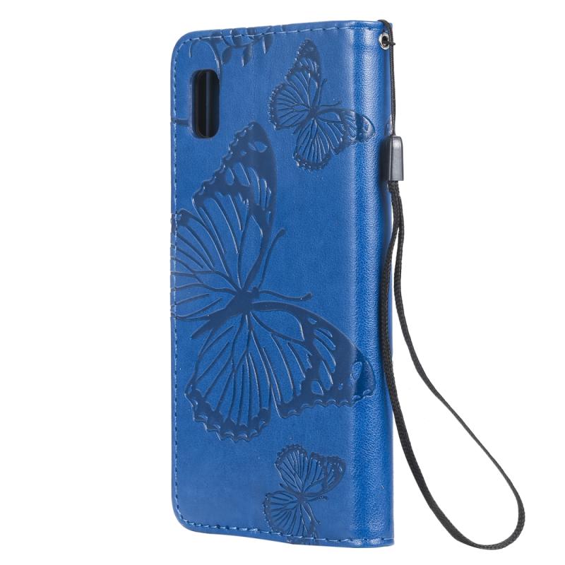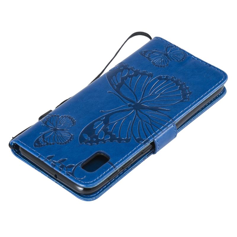 Pressed Printing Butterfly Pattern Horizontal Flip PU Leather Case with Holder & Card Slots & Wallet & Lanyard For Galaxy A80(Blue)