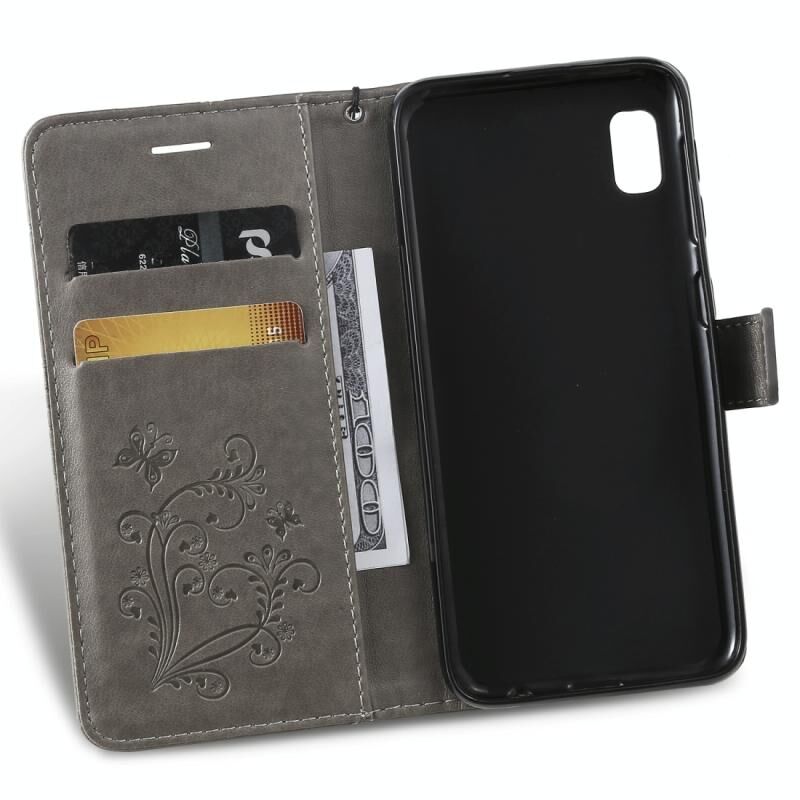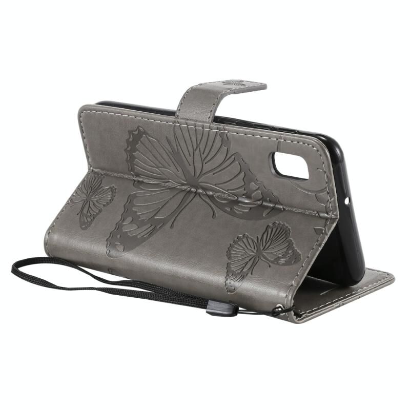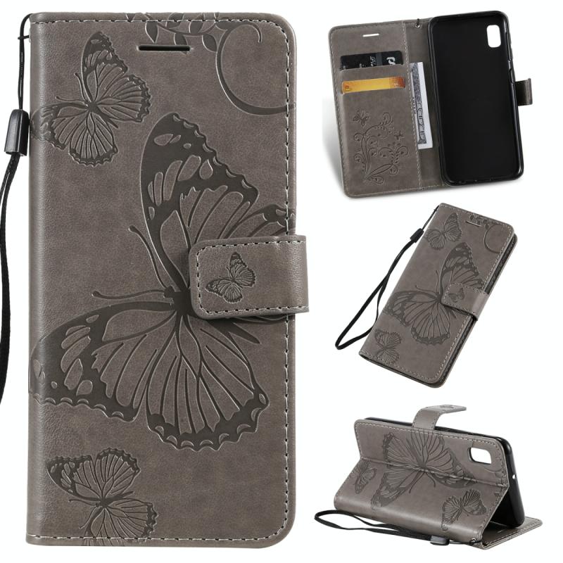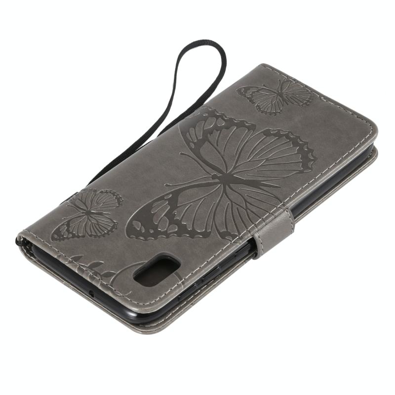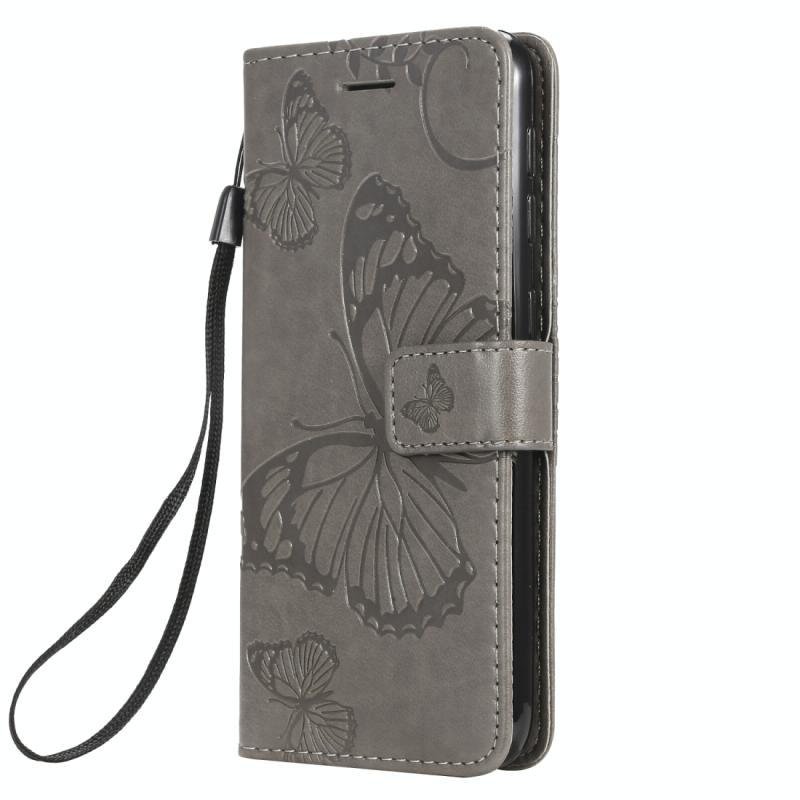 Pressed Printing Butterfly Pattern Horizontal Flip PU Leather Case with Holder & Card Slots & Wallet & Lanyard For Galaxy A80(Grey)