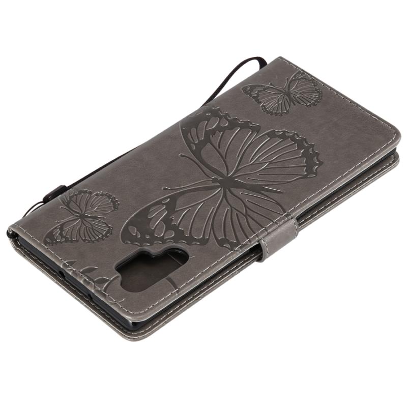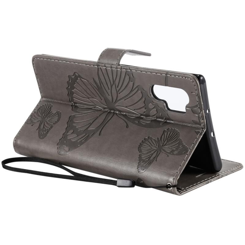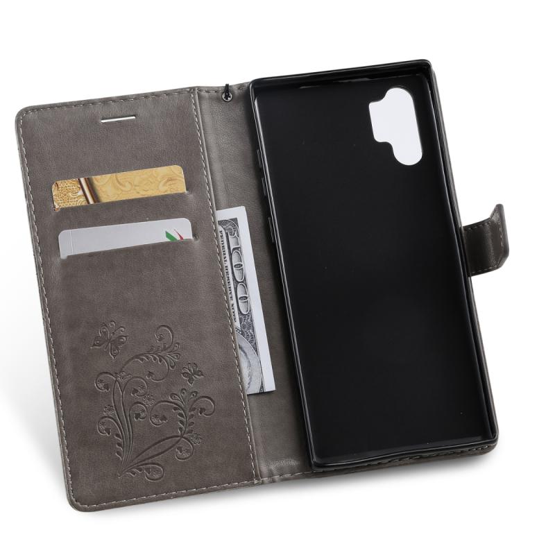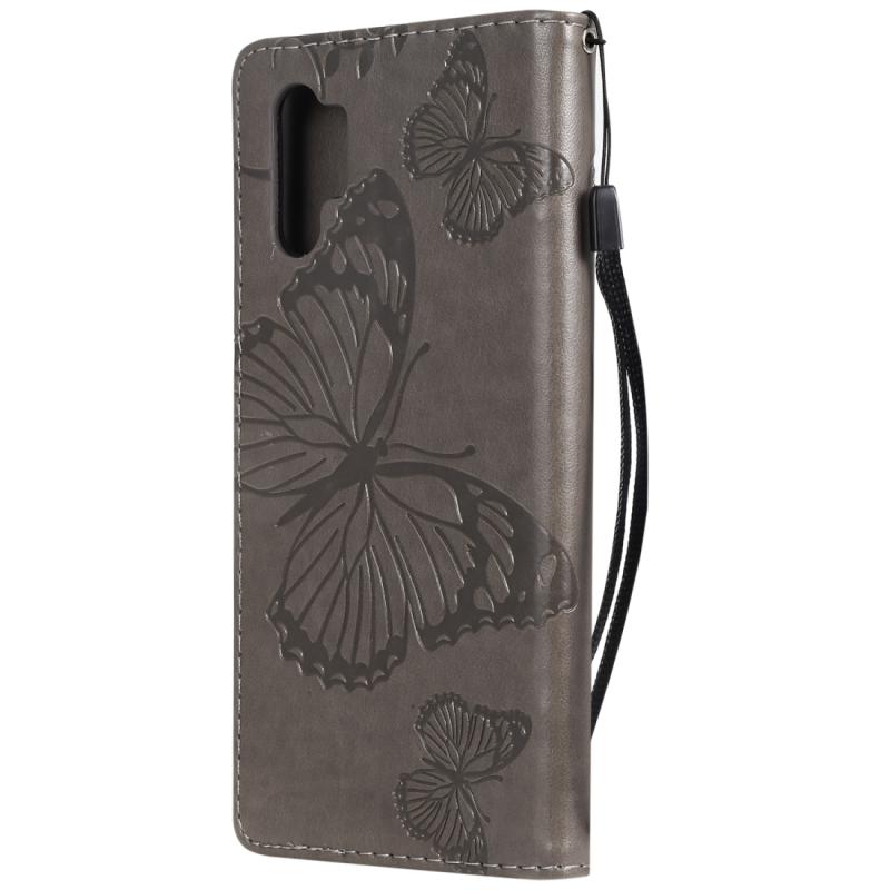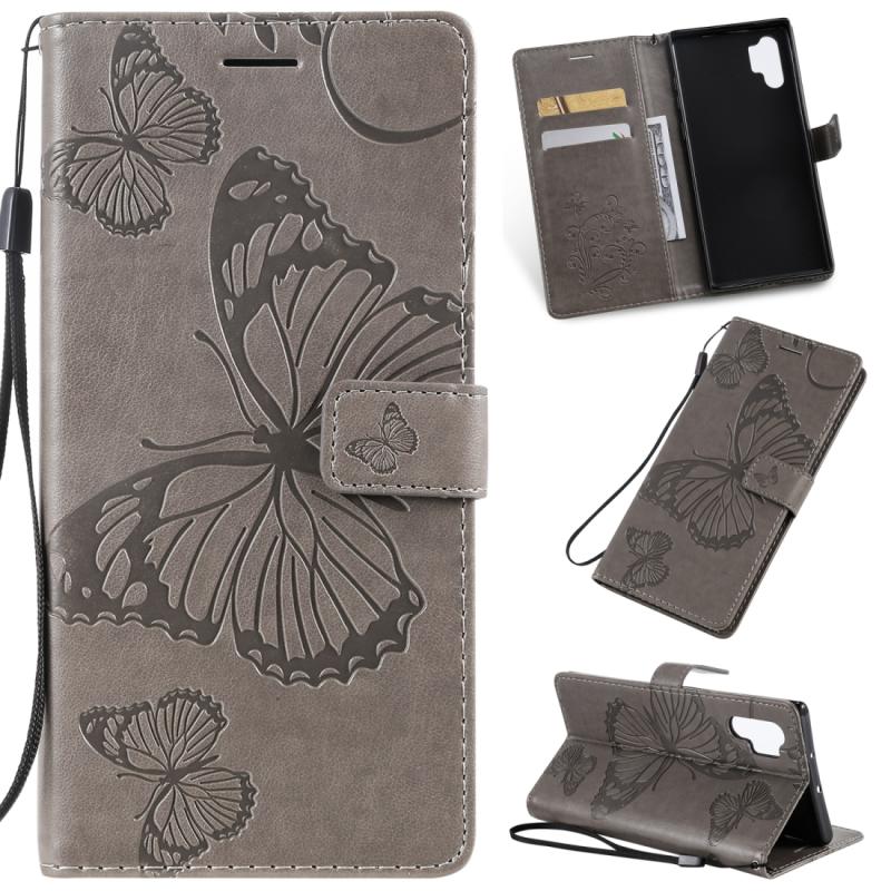 Pressed Printing Butterfly Pattern Horizontal Flip PU Leather Case with Holder & Card Slots & Wallet & Lanyard For Galaxy Note 10+ / 10 Pro(Grey)