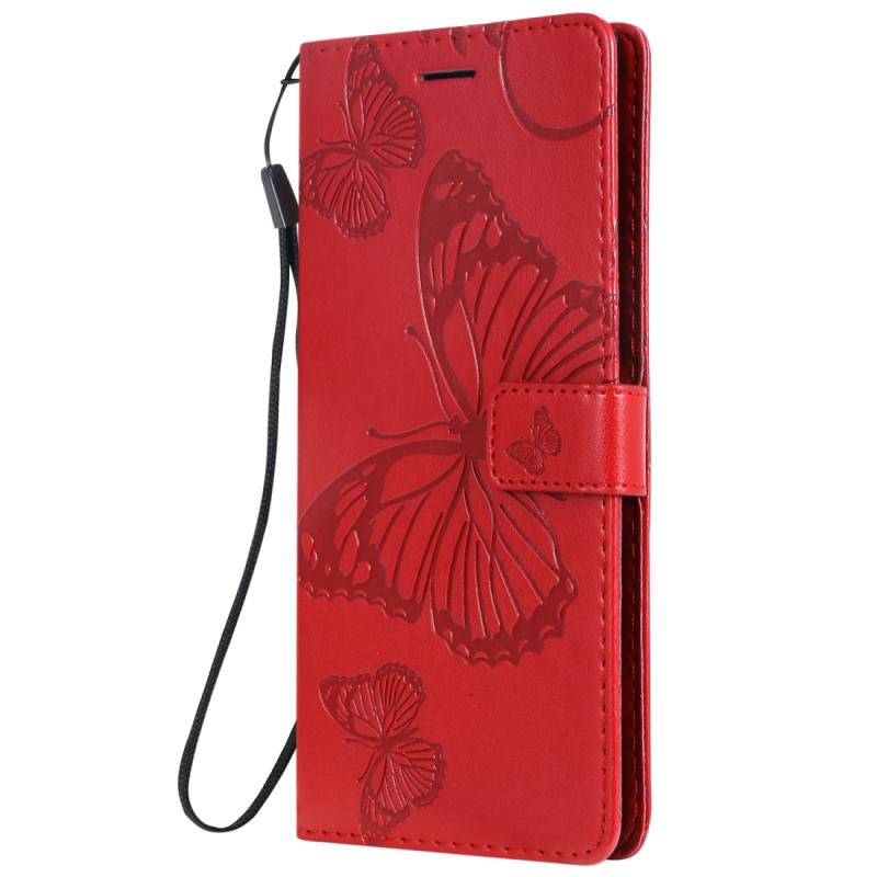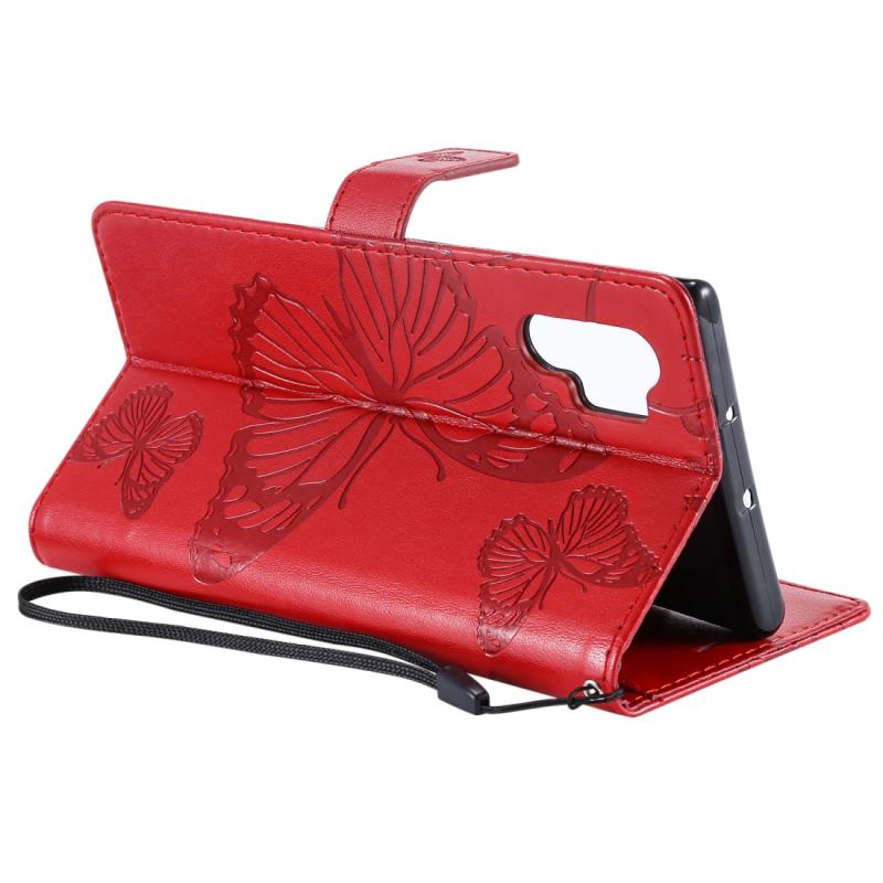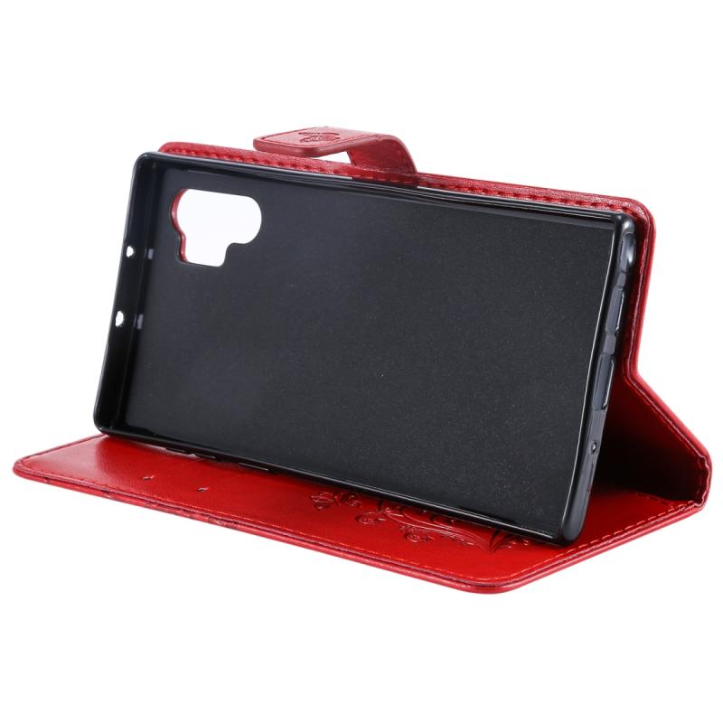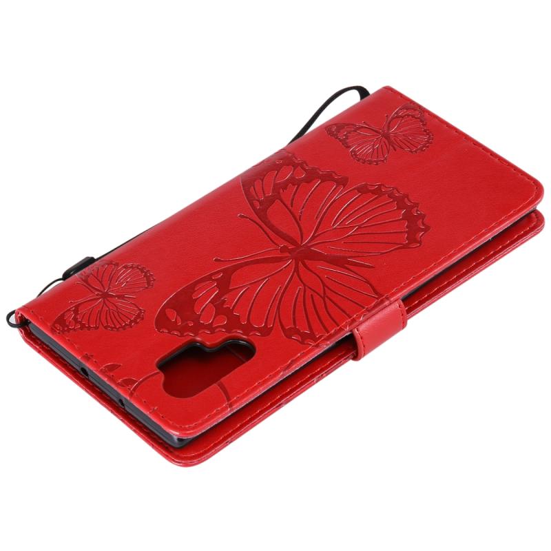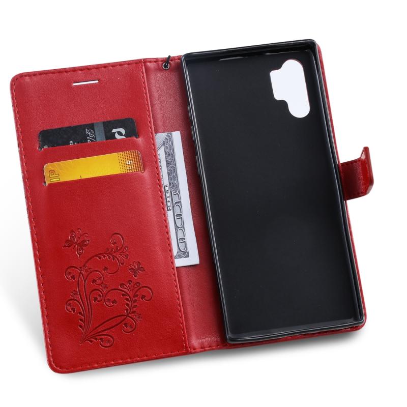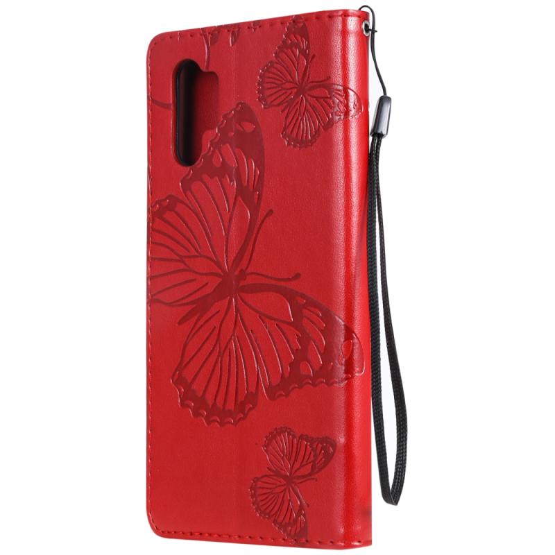 Pressed Printing Butterfly Pattern Horizontal Flip PU Leather Case with Holder & Card Slots & Wallet & Lanyard For Galaxy Note 10+ / 10 Pro(Red)