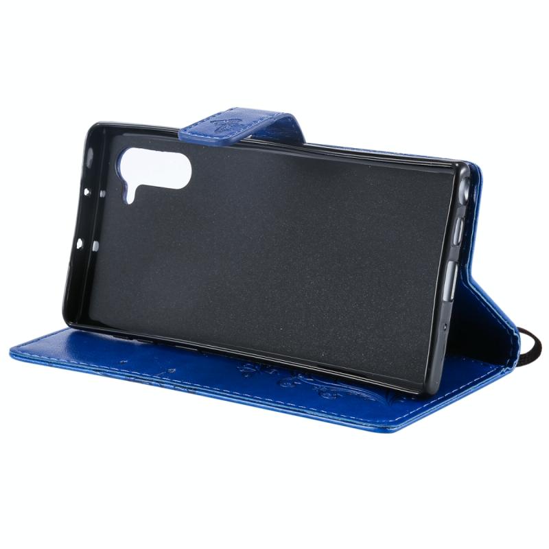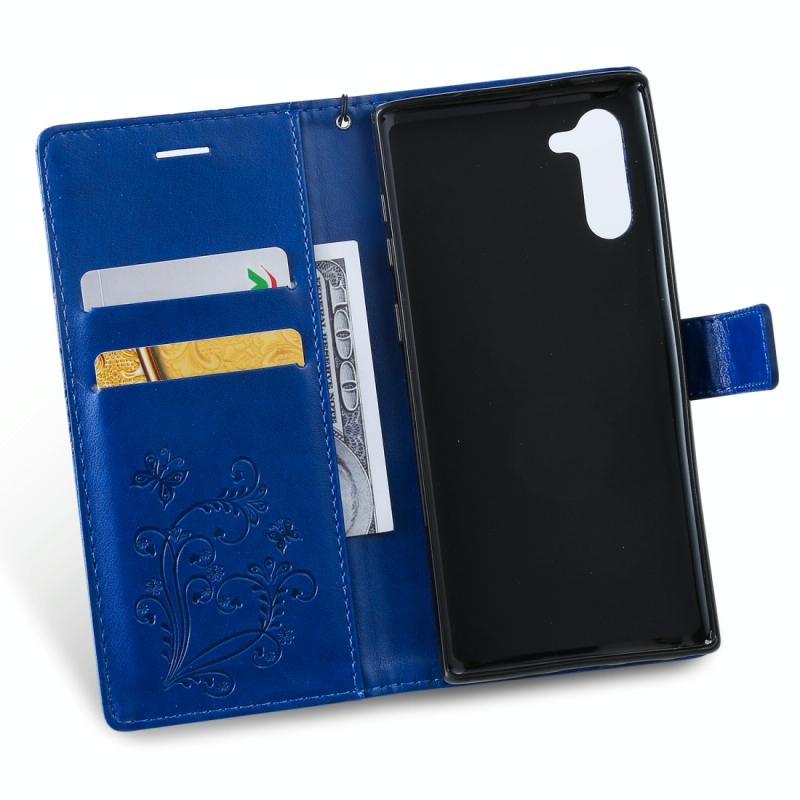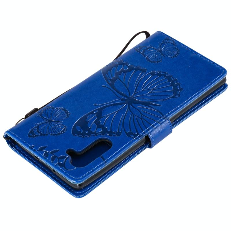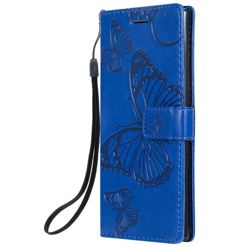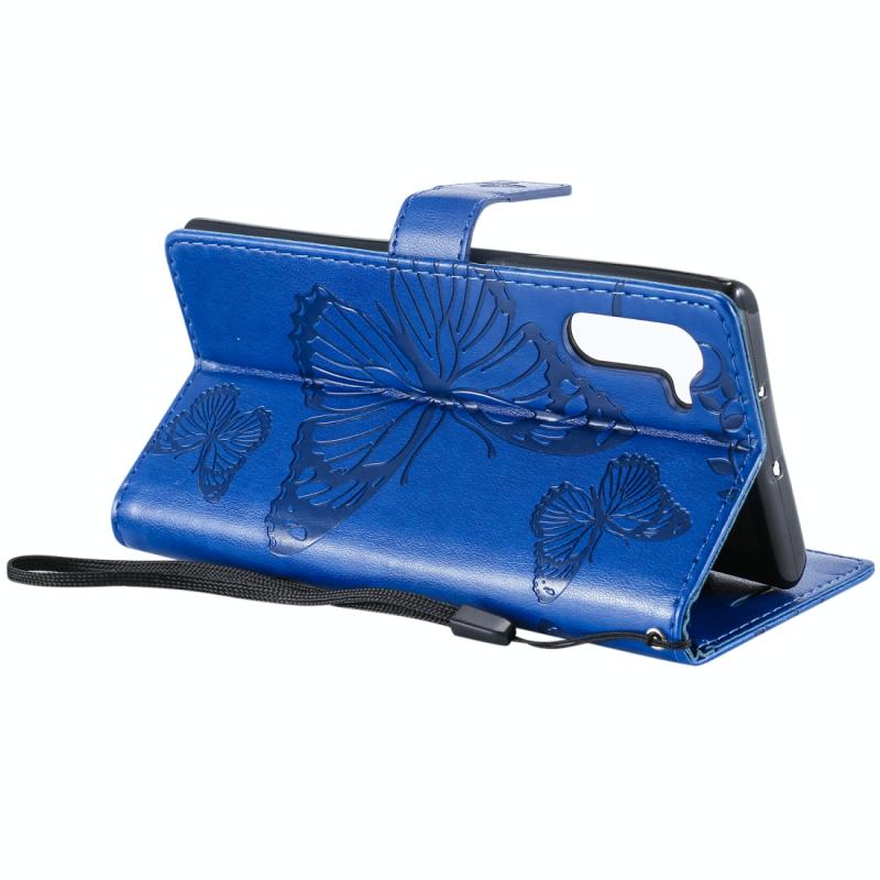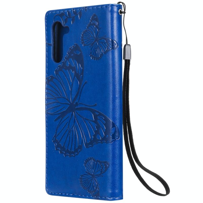 Pressed Printing Butterfly Pattern Horizontal Flip PU Leather Case with Holder & Card Slots & Wallet & Lanyard For Galaxy Note 10(Blue)