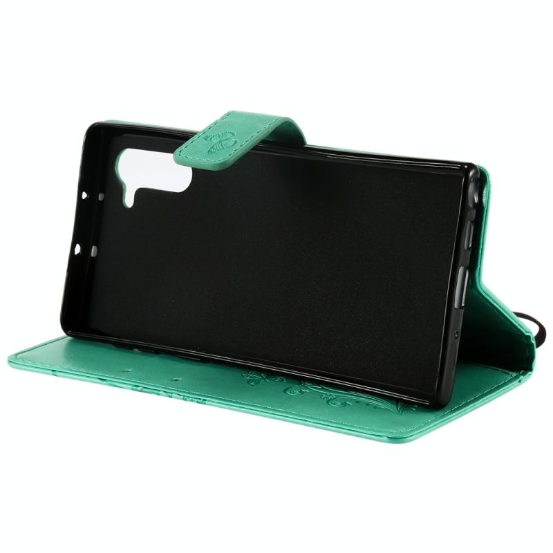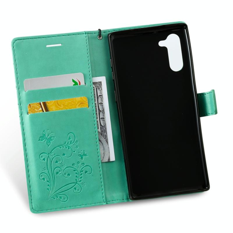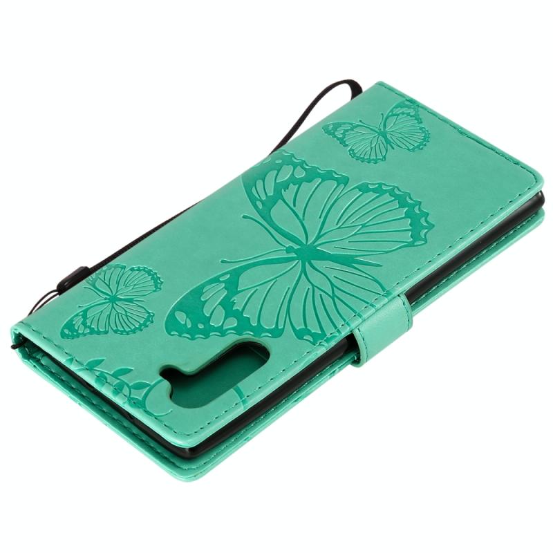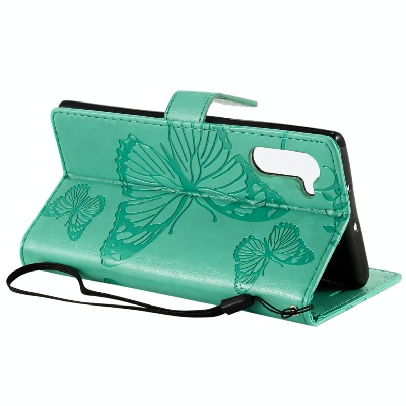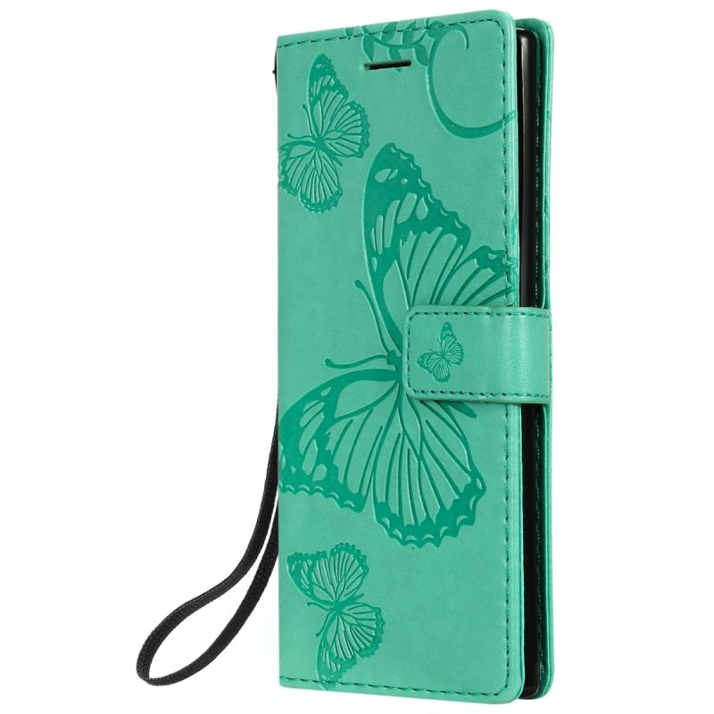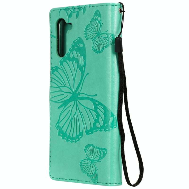 Pressed Printing Butterfly Pattern Horizontal Flip PU Leather Case with Holder & Card Slots & Wallet & Lanyard For Galaxy Note 10(Green)