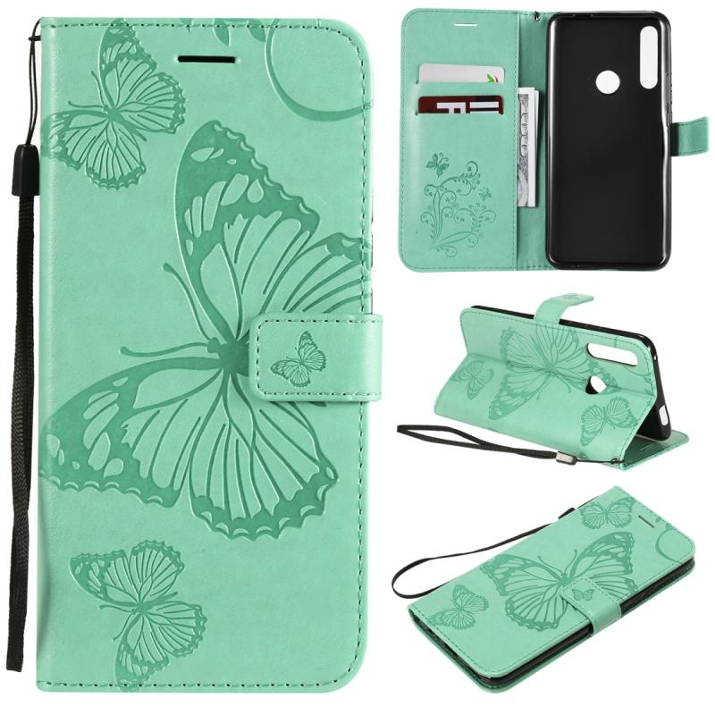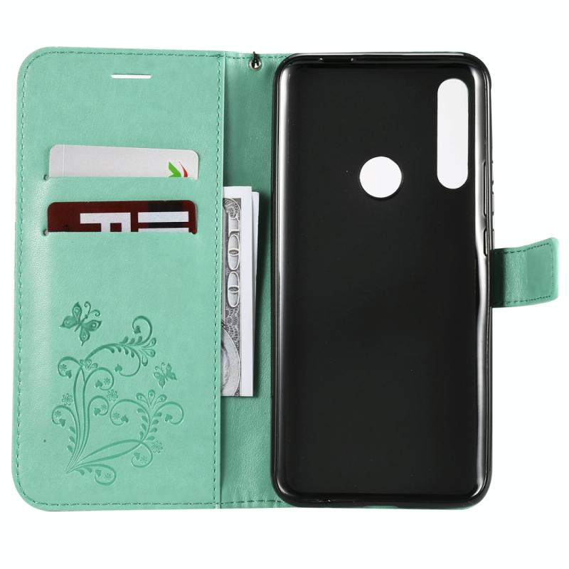 Pressed Printing Butterfly Pattern Horizontal Flip PU Leather Case with Holder & Card Slots & Wallet & Lanyard For Huawei P Smart Z / Y9 Prime 2019(Green)