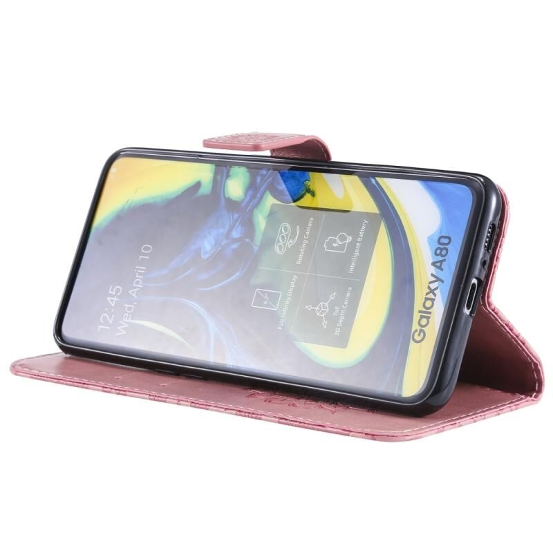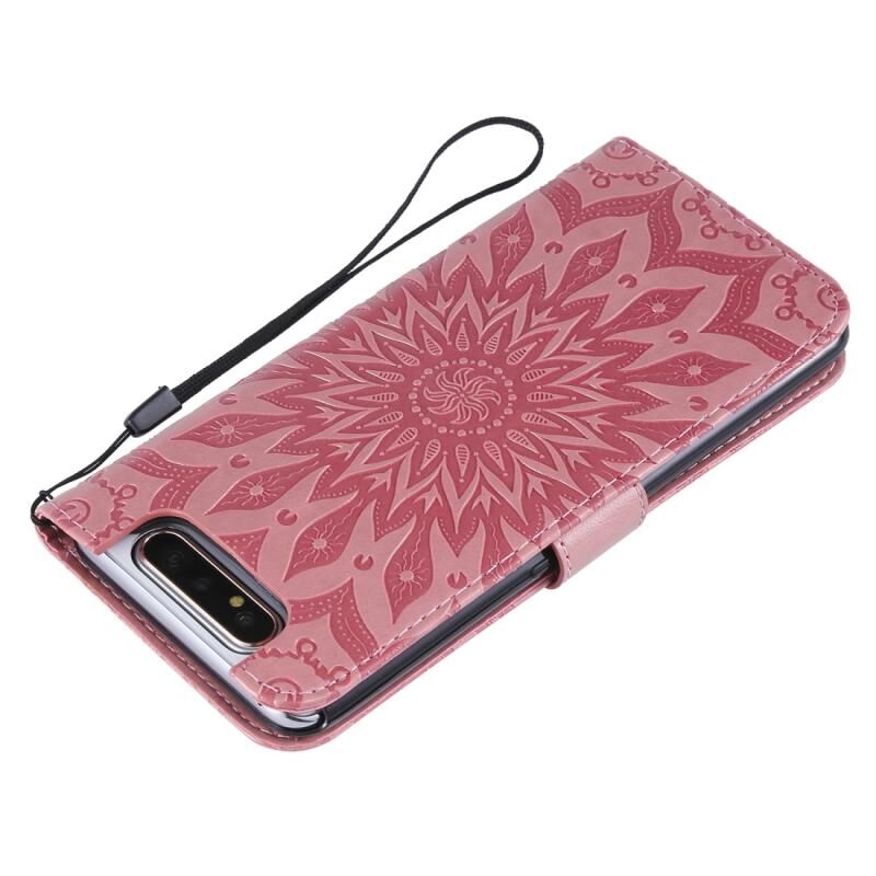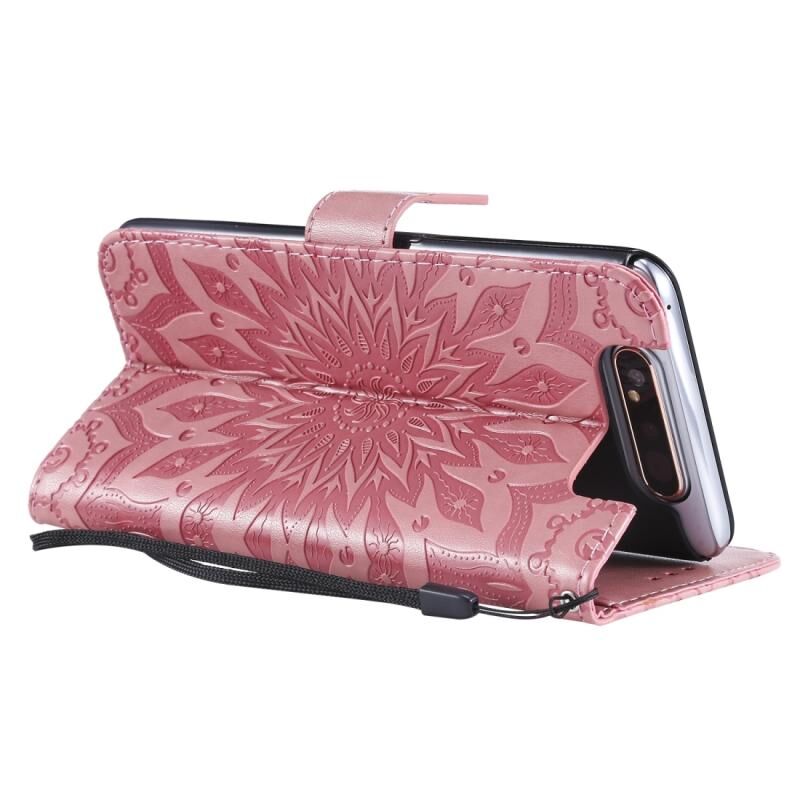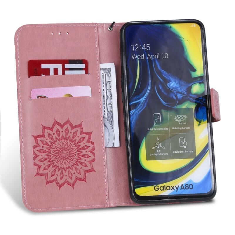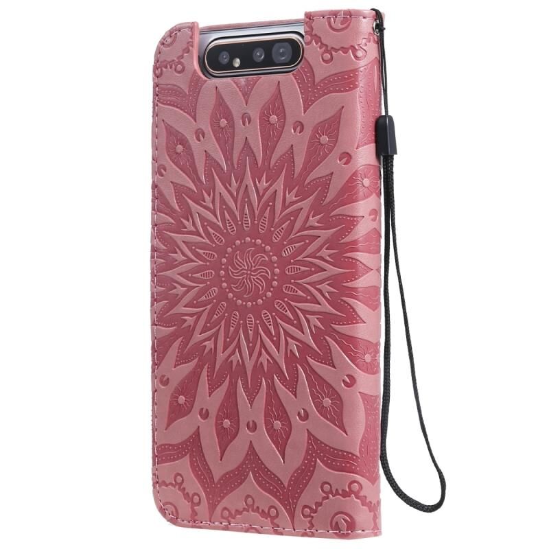 Τυπωμένο εκτύπωση ηλιοτρόπιο μοτίβο οριζόντια Flip PU δέρμα υπόθεση για Galaxy A80, με θήκη & υποδοχές για κάρτες & πορτοφόλι & κορδόνι (ρόζ)