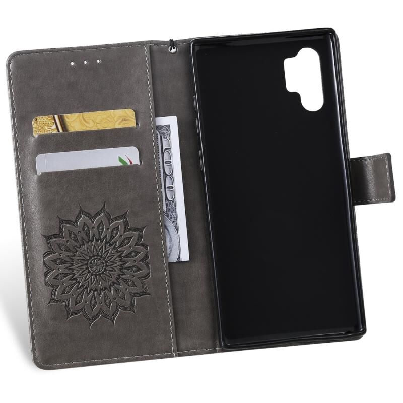 Τυπωμένη εκτύπωση ηλιοτρόπιο μοτίβο οριζόντια Flip PU δέρμα υπόθεση για Galaxy Note 10 + / Note 10 Pro, με θήκη & υποδοχές για κάρτες & πορτοφόλι & Lanyard (γκρι)
