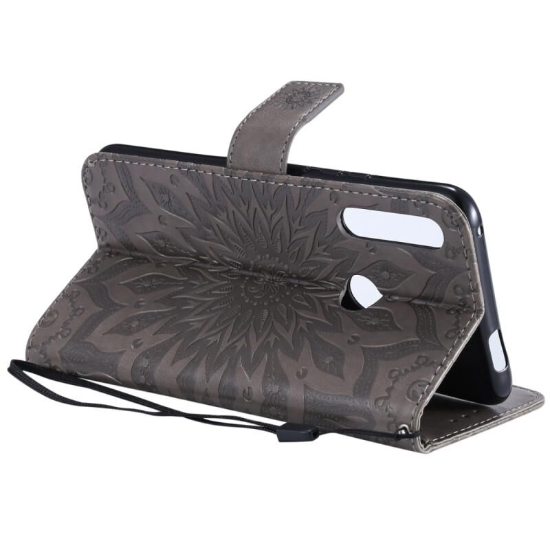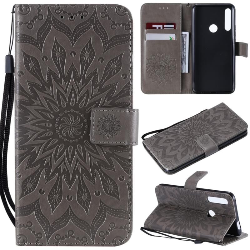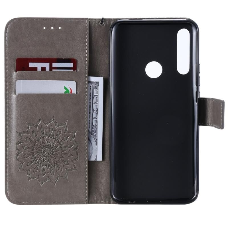 Τυπωμένη εκτύπωση ηλιοτρόπιο μοτίβο οριζόντια Flip PU δέρμα υπόθεση για Huawei P Smart Z / Y9 Prime (2019), με κάτοχο & υποδοχές καρτών & πορτοφόλι & Lanyard (γκρι)