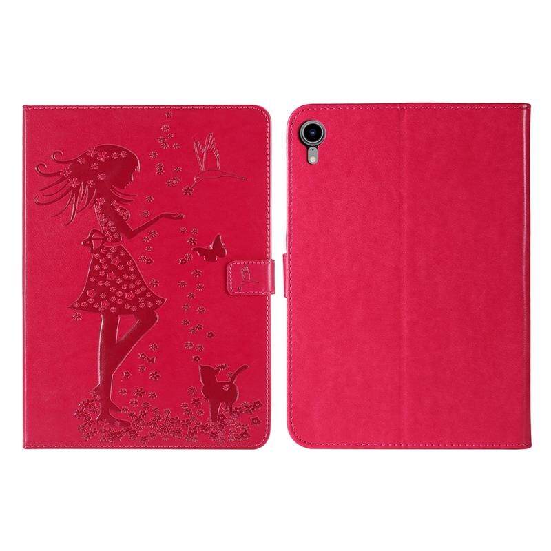 Θήκη δερμάτινου tablet με σχέδιο γυναίκας και γάτας, με ανάγλυφη εκτύπωση, οριζόντια αναδίπλωση για iPad mini 6 (Πράσινο)