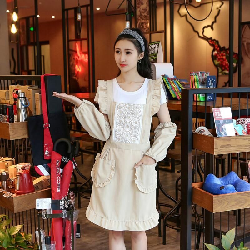 Πριγκίπισσα ποδιά κουζίνας γυναικών εργασίας ρούχα καφέ κατάστημα ποδιά, Προδιαγραφές: ποδιά + μανίκι (κίτρινο)