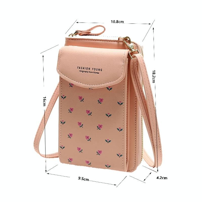 Τυπωμένο τηλέφωνο τσάντα Floral γυναίκα πολυλειτουργική τσάντα σταυρό τσάντα πολλαπλών καρτών τσάντα ώμου (μπλε)