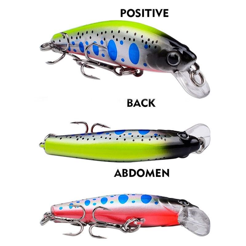4. Sinking crankbait with 2 treble hooks, the inner ball moves from the heads to the tail, which can keep the bait balanced, throw it far, make a lot of noise in the water, easy to aim at the fish
