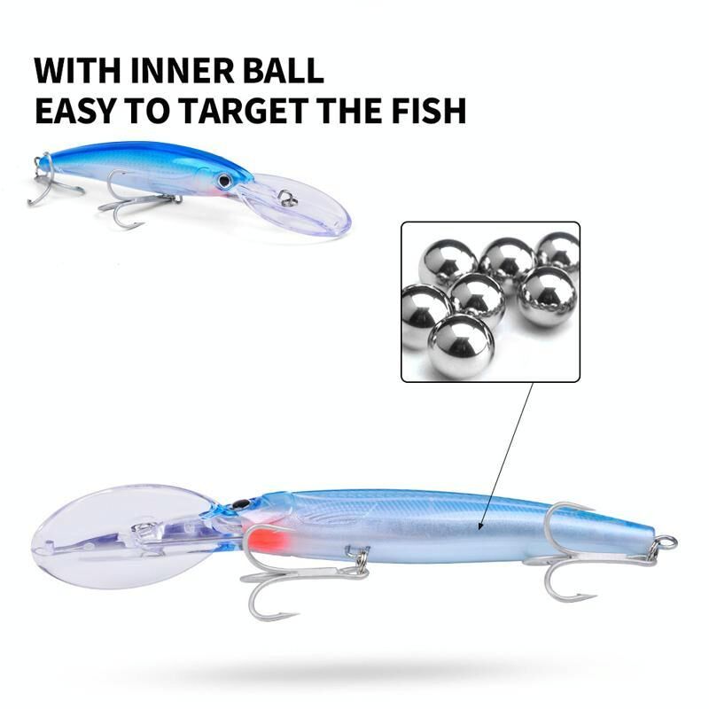 3. The inner ball moves from the fish-head to the fish-tail, which can balance the bait and throw it far, it makes a lot of noise in the water and is easy to aim at the fish