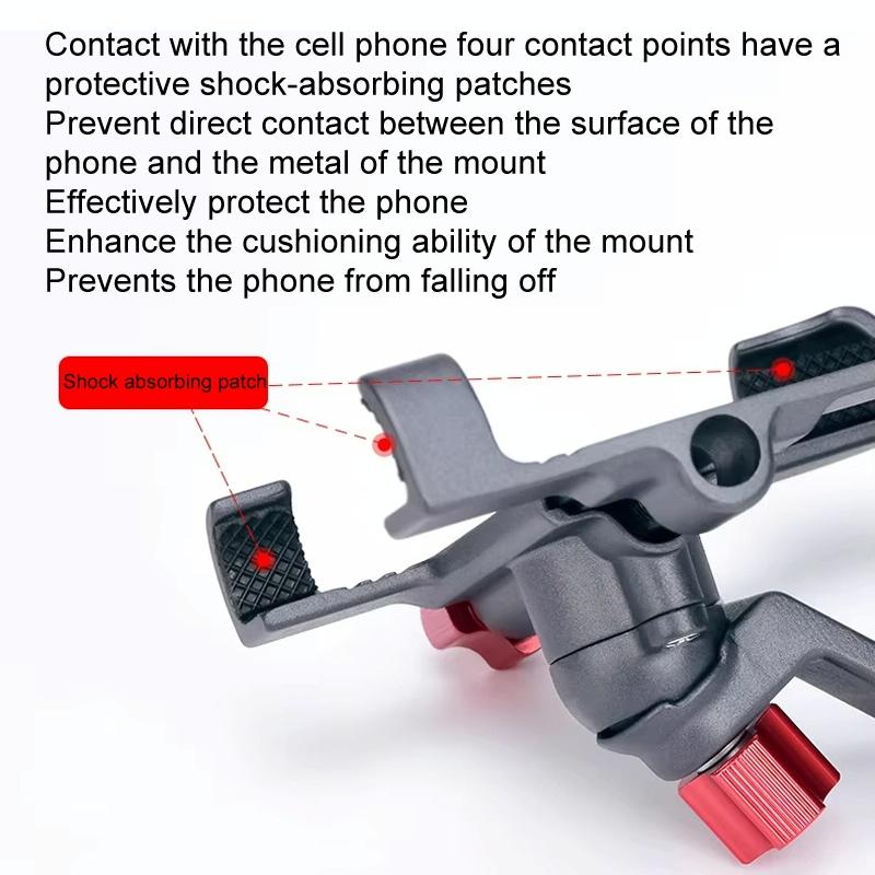 3. Τέσσερα σημεία επαφής με το τηλέφωνο με προστατευτικά απορρόφησης κραδασμών, για να αποφευχθεί η άμεση επαφή μεταξύ της επιφάνειας του τηλεφώνου και του μεταλλικού βραχίονα, αποτελεσματική προστασία του τηλεφώνου, ενίσχυση της ικανότητας απορρόφησης κραδασμών του βραχίονα, για να αποφευχθεί η πτώση του τηλεφώνου