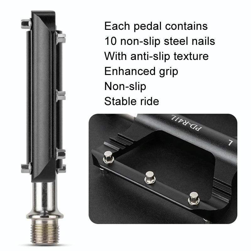 4. Κάθε πεντάλ περιέχει 10 αντιολισθητικά καρφιά από ατσάλι, με αντιολισθητική υφή, βελτιώνει την πρόσφυση, δεν γλιστράει εύκολα, σταθερή οδήγηση.