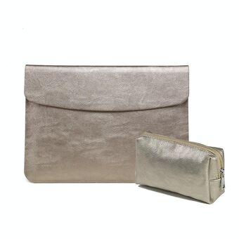 Horizontal Litchi Texture Laptop Bag Liner Bag For MacBook 13 Inch A1708 / 1706/1989 / A2337 / A2338(Liner Bag+Power Bag Golden)