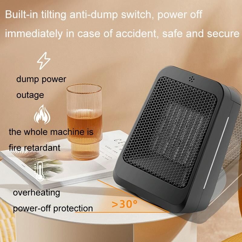 2. PTC heating, lasting constant temperature, portable desktop, tilt power off